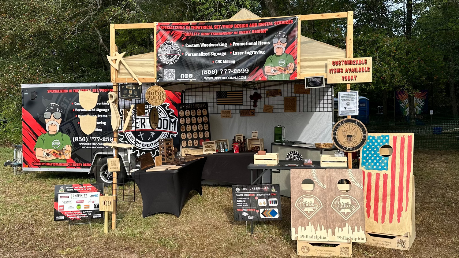 Tell us your creative desire and we’ll bring it to life at South Jersey’s premier woodshop, Upper Room Custom Creations. We specialize in custom woodworking, personalized signage, and unique promotional items, using advanced laser engraving and CNC milling techniques. Our expert craftsmanship extends to theatrical set and prop design and rental services. Experience artistry at its finest and make your vision a reality today.