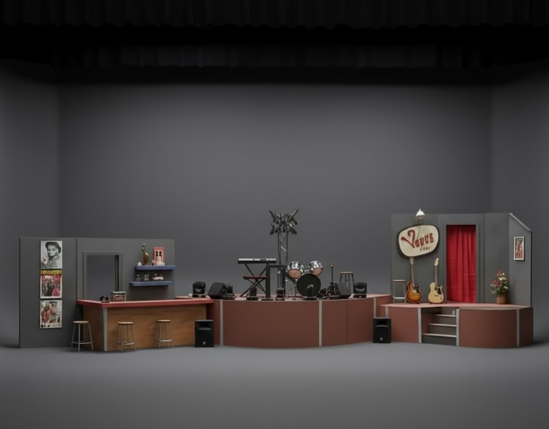 Whether you need a one-of-a-kind focal piece, a full set build, or ready-to-go rentals, we specialize in designs that captivate audiences and simplify production logistics. With experience in both small community theaters and large-scale productions, we understand the unique challenges of stage design.